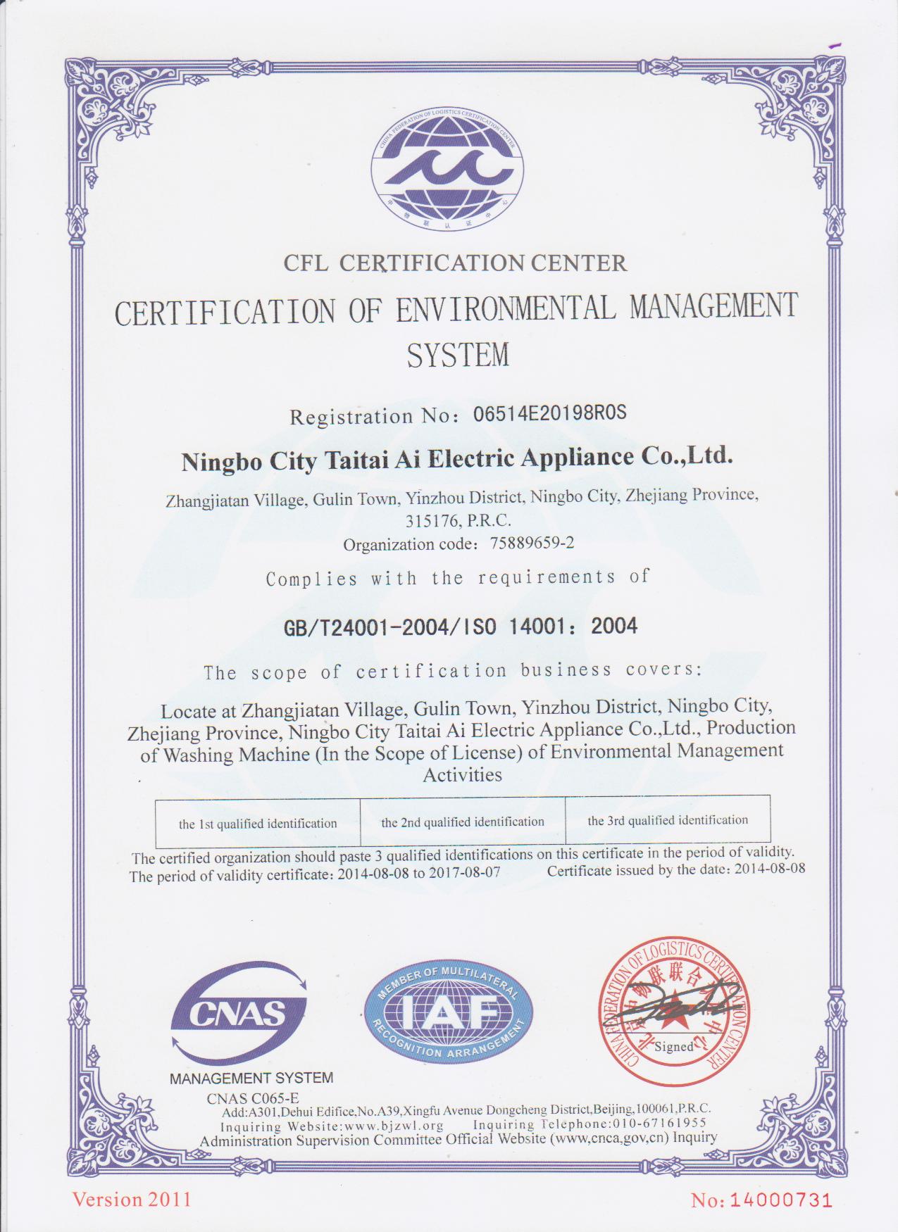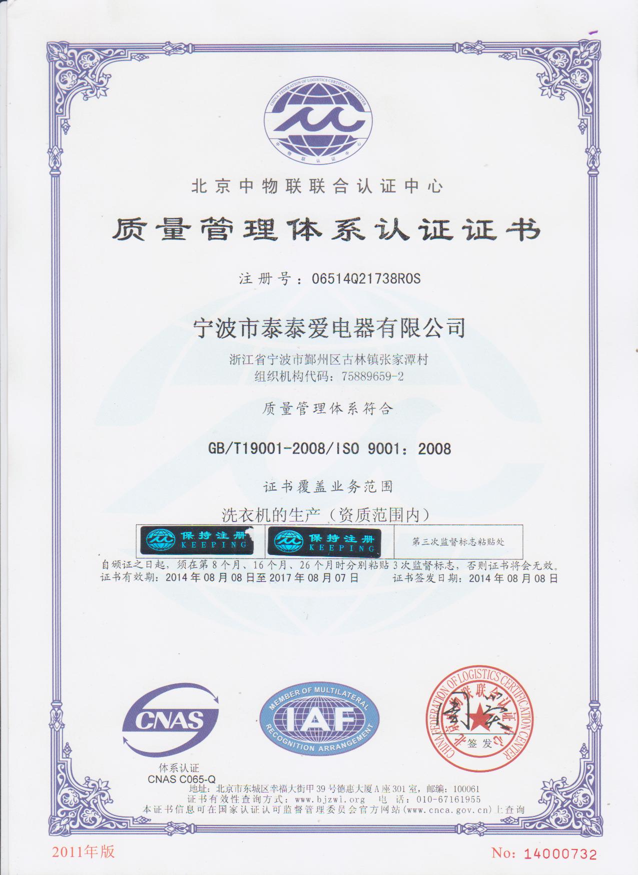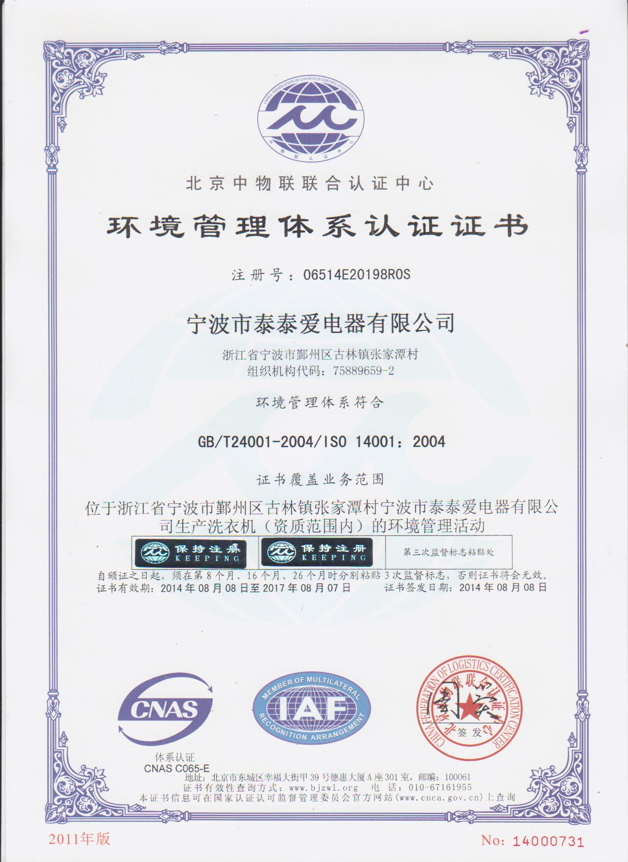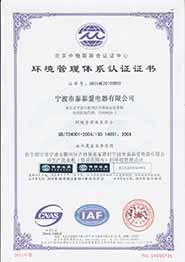 The company all along pursues the management idea of “home boutique, customer-trusted, environmental concern and harmonious development”, sticks to innovation, makes great efforts to pursue “quality, exquisite, beautiful and practical product”, and takes the target of “continuously improve product and service quality, strive for the satisfaction of customers”. For the enterprise planning and development target on the basis of international practice, the company has introduced ISO9001 quality management system; ISO14001 environmental management system. For the successful export to international market, the company has obtained PRC export qualification, the affirmation of commodity inspection and export product second-class management certificate. The company is the member unit of Ningbo Mould Association, member unit of Ningbo Quality Association and member unit of Ningbo SEPEA.