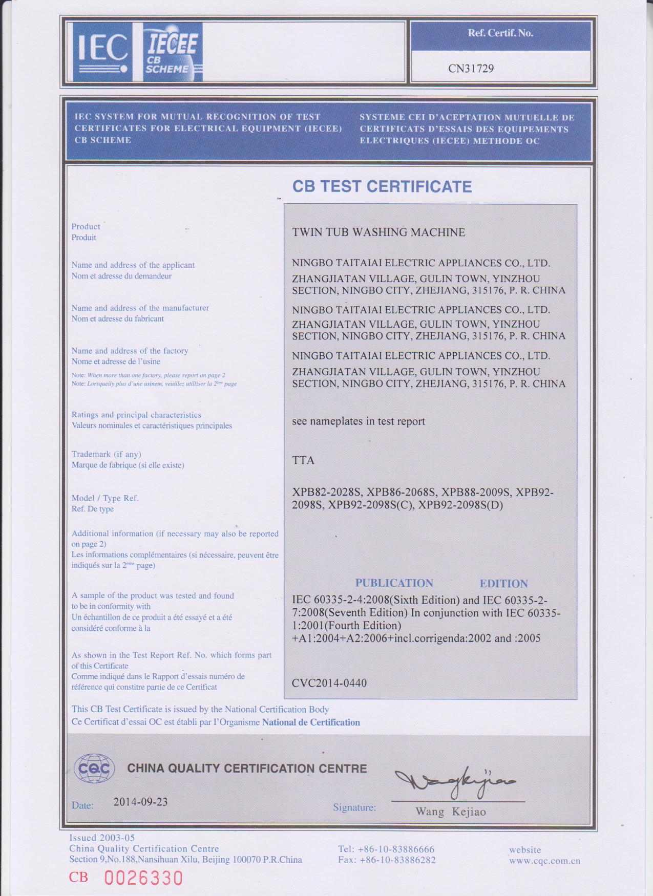 Copyright©(2009)NINGBO TAITAIAI ELECTRIC APPLIANCES CO., LTD. Rights Reserved